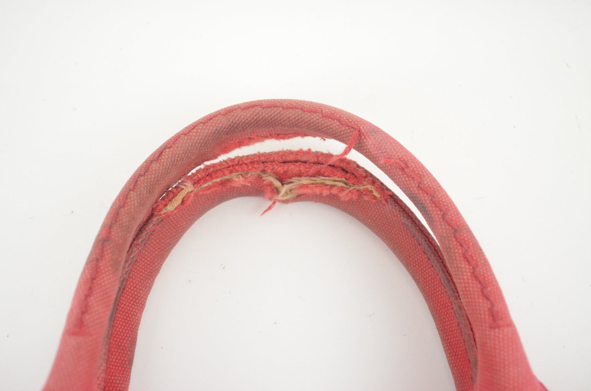 Henkel: starker Abrieb, Naht teilweise aufgerissen, verfärbt